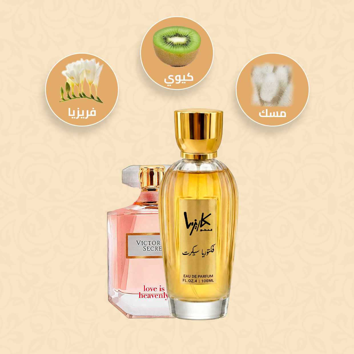 Love is Heavenly (2016) Victoria’s Secret عطر زهري – فواكه للنساء . Love is Heavenly (2016) صدر عام 2016. إفتتاحية العطر زهر الماندرين , توت العليق, البرتقال و الكيوي; قلب العطر زنبق الماء, الفريزيا, الفاوانيا و الأوركيد; قاعدة العطر تتكون من المسك, خشب الصندل, أخشاب الأبنوس و أخشاب الماهوجني.