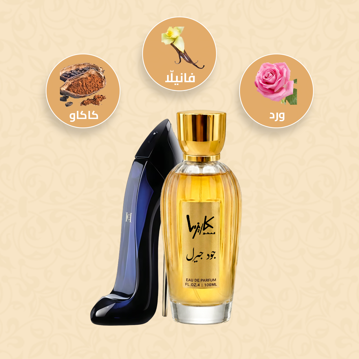 الباتشوليGood Girl Carolina Herrera عطر شرقي – زهري للنساء . Good Girl صدر عام 2016. إفتتاحية العطر اللوز, القهوه, البرغموت و الليمون; قلب العطر مسك الروم, ياسمين سامباك , زهر البرتقال, الورد البلغاري و السوسن; قاعدة العطر تتكون من حبوب التونكا, الكاكاو, الفانيليا, حلوي اللوز, خشب الصندل, المسك, العنبر, أخشاب الكشمير, الباتشولي, القرفة و خشب الأرز.